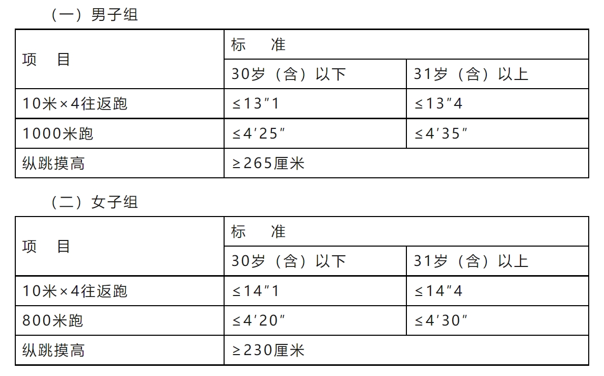 (三)測(cè)評(píng)標(biāo)準(zhǔn)中涉及的年齡計(jì)算時(shí)間截止到體能測(cè)評(píng)當(dāng)月。