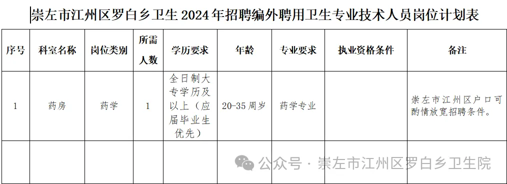 根據(jù)工作需要,結(jié)合我院實(shí)際情況,江州區(qū)羅白鄉(xiāng)衛(wèi)生院面向社會(huì)招聘工作人員。
