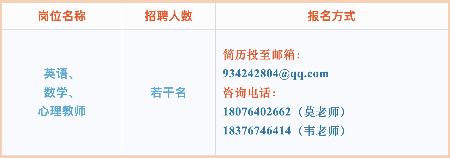 根據(jù)2025年春季學期我校教育教學需要,現(xiàn)向社會公開招聘編外教師。我校擬招若干名名初中英語、數(shù)學、心理頂崗教師。工資待遇按江南區(qū)政府事業(yè)單位臨時聘用人員工資標準:無職稱3100元/月,初級職稱3200元/月,中級職稱3500元/月,高級職稱3700元/月,其他班主任津貼(5元/生·月)、年度績效(1000-1200元/年)和參與學校管理工作量發(fā)放(有五險一金)。學校提供免費住宿。