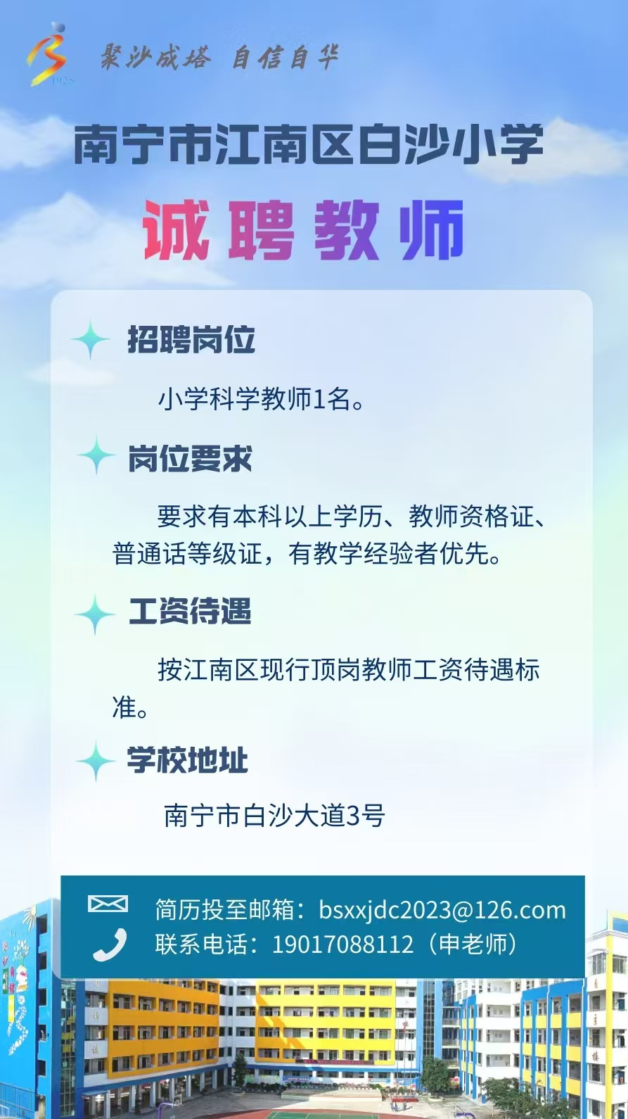 2025年南寧市江南區(qū)白沙小學誠聘教師1人