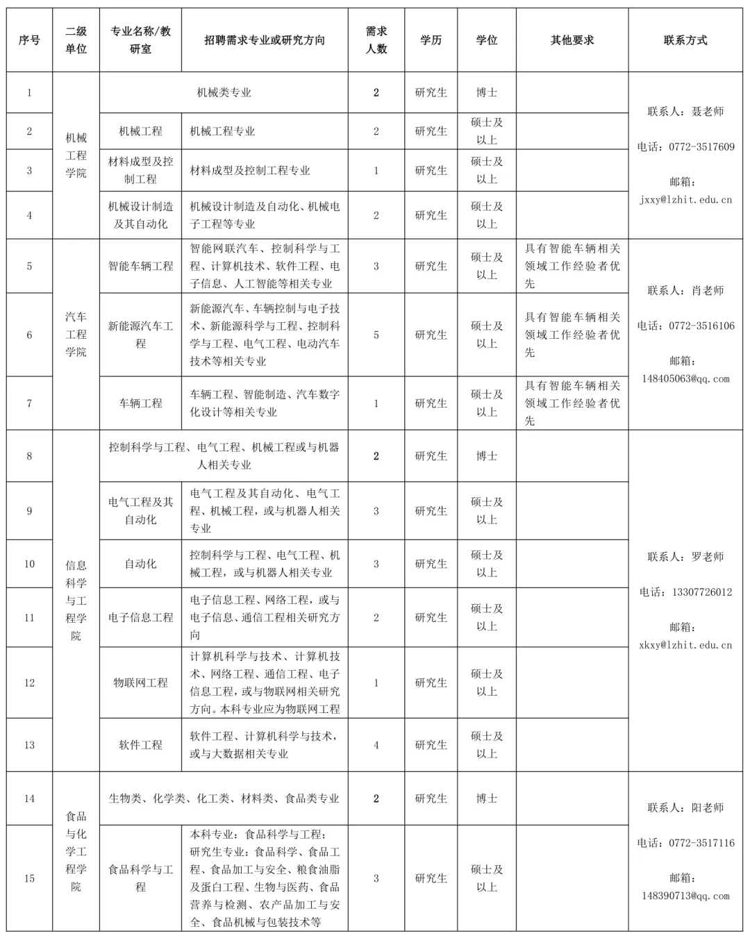 聯(lián)系地址:廣西柳州市魚(yú)峰區(qū)新柳大道99號(hào)柳州工學(xué)院人事處(科教樓1409辦公室)