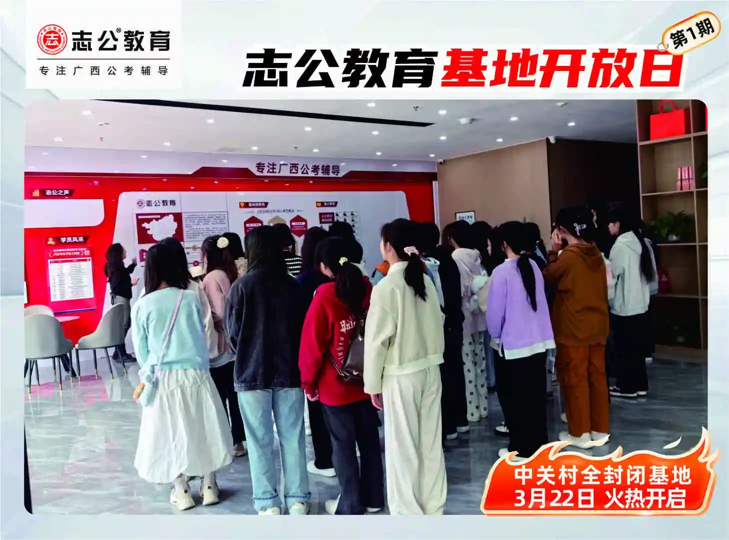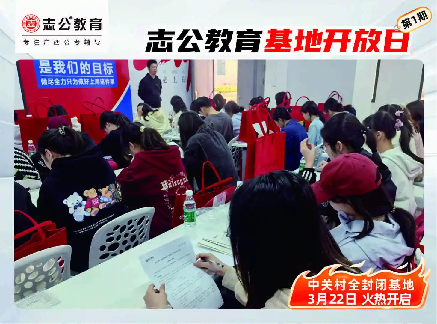 志公教育(中關(guān)村)全封閉基地于2024年12月16日正式開業(yè),總面積達十萬平方空間,是廣西ZUI大的全封閉公考學習基地。這里擁有全新升級的場地,空間布局合理,教學設(shè)施完備。寬敞明亮的教室,為學員提供舒適的學習環(huán)境;功能齊全的自習室,滿足學員隨時沉浸學習的需求。