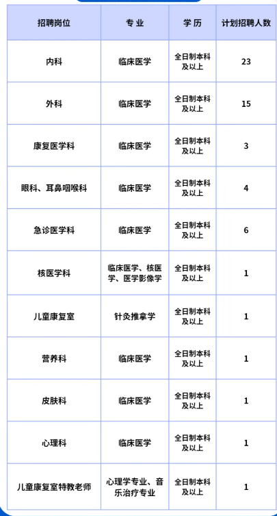(三)急診醫(yī)學科、核醫(yī)學科、眼科、耳鼻咽喉科、康復醫(yī)學科等急需緊缺崗位的應屆規(guī)培畢業(yè)生經一個月試用期滿,考核合格者,與我院簽訂五年及以上勞動合同的醫(yī)院可給予10萬元獎勵并享受同級別的待遇。