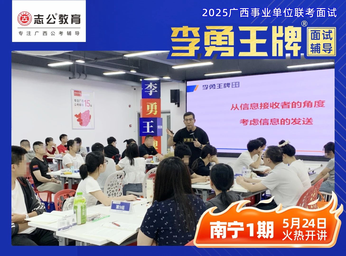 2025年廣西事業(yè)單位面試培訓(xùn)課程 —— 李勇王牌®班在學(xué)員們的熱切期待中正式開班。學(xué)員們陸續(xù)簽到,為助力學(xué)員迅速適應(yīng)學(xué)習(xí)節(jié)奏,志公教育精心準(zhǔn)備了備考大禮包,內(nèi)含歷年課程講義、高分技巧等實(shí)用資料。班主任團(tuán)隊(duì)全程跟進(jìn),細(xì)致講解課程安排、考勤制度及學(xué)員服務(wù),從學(xué)習(xí)到生活,全方位為學(xué)員保駕護(hù)航。