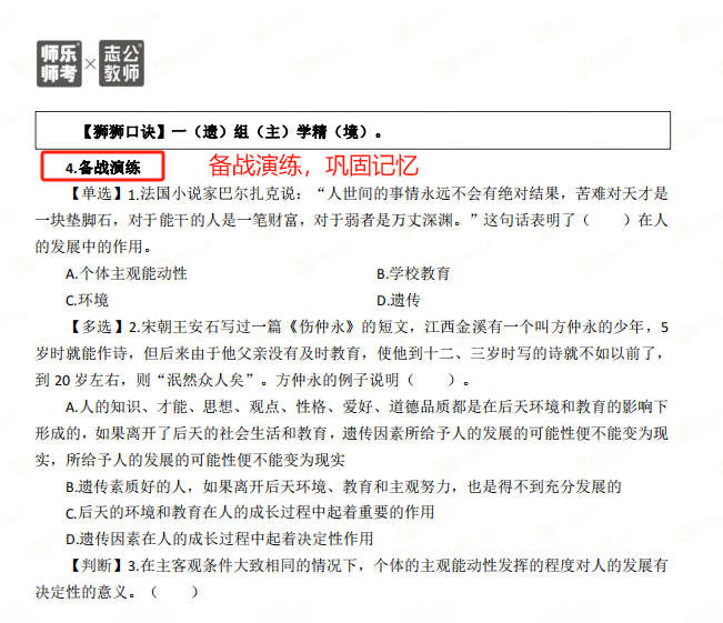 匹配考綱要求,精選50個核心考點:銘師組團(tuán)精研,基于考綱收錄《教育學(xué)與教學(xué)法基礎(chǔ)知識》《教育心理學(xué)與德育工作基礎(chǔ)知識》核心考點,重點突出,幫助考生學(xué)習(xí)記憶。