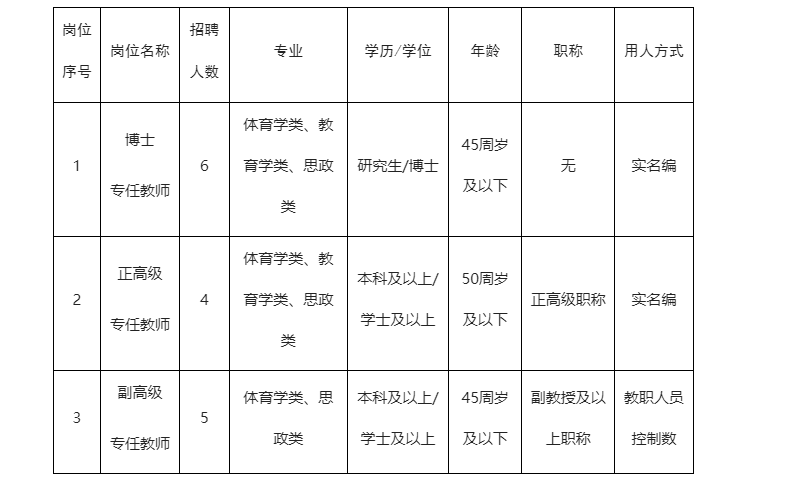 2.報(bào)名方法:采用網(wǎng)上報(bào)名,符合崗位應(yīng)聘條件人員,請(qǐng)?zhí)顚?xiě)《廣西體育高等專(zhuān)科學(xué)校2025年應(yīng)聘報(bào)名登記表》(見(jiàn)附件),并連同求職材料一并打包壓縮后發(fā)送至人事處郵箱:gxtzzzrsc@126.com,郵件和附件名稱(chēng)統(tǒng)一命名為“高層次人才+博士/正高/副教授+姓名”。應(yīng)聘者須按照要求提交報(bào)名材料,不按照要求提交者將視為無(wú)效報(bào)名,資格審查不予通過(guò)。