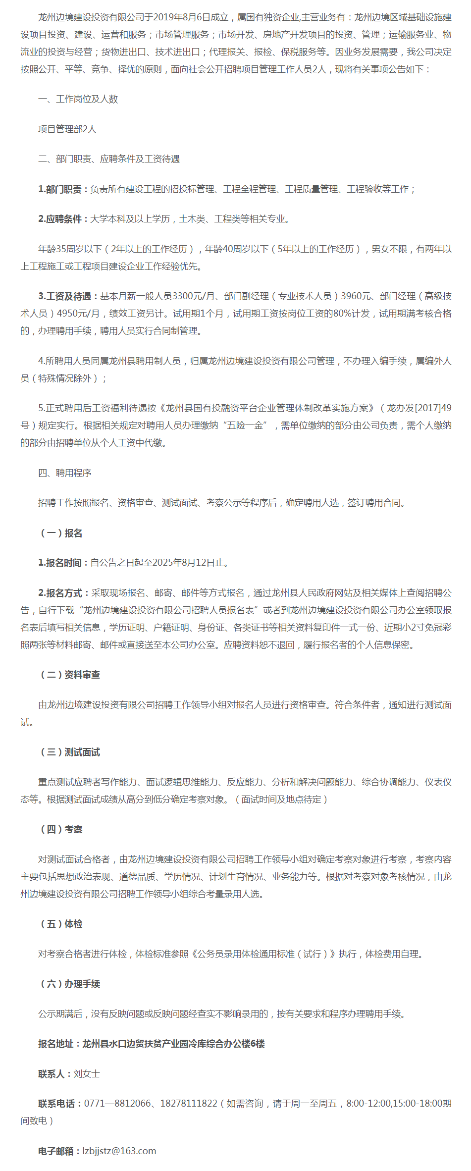 原文標題:龍州邊境建設(shè)投資有限公司招聘公告