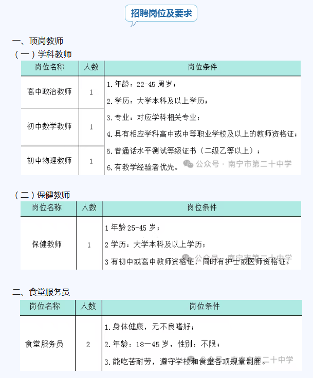 原文標題:南寧市第二十中學招聘啟事