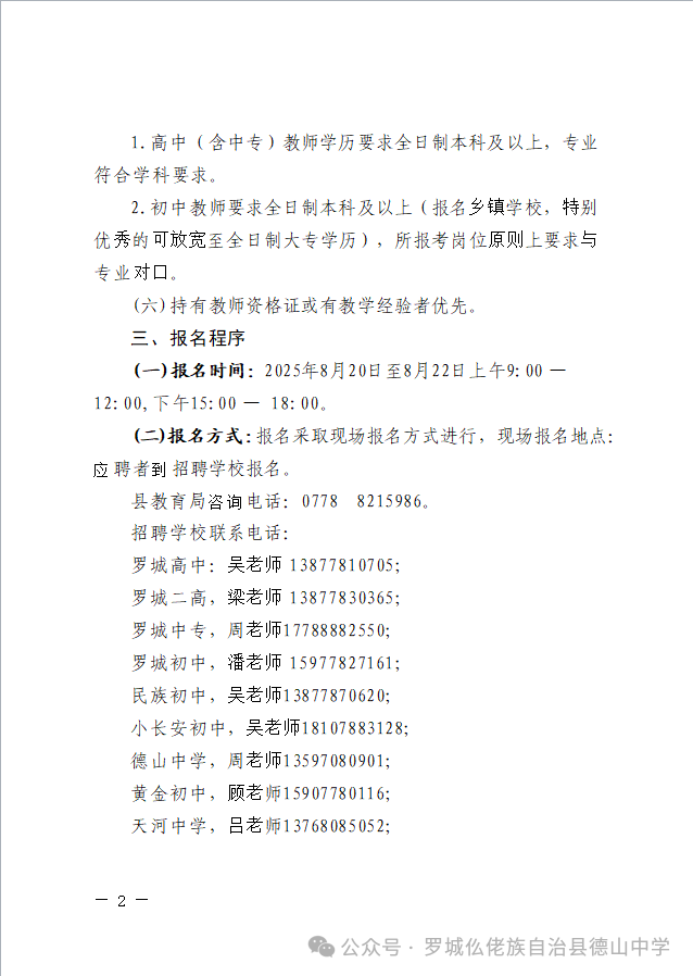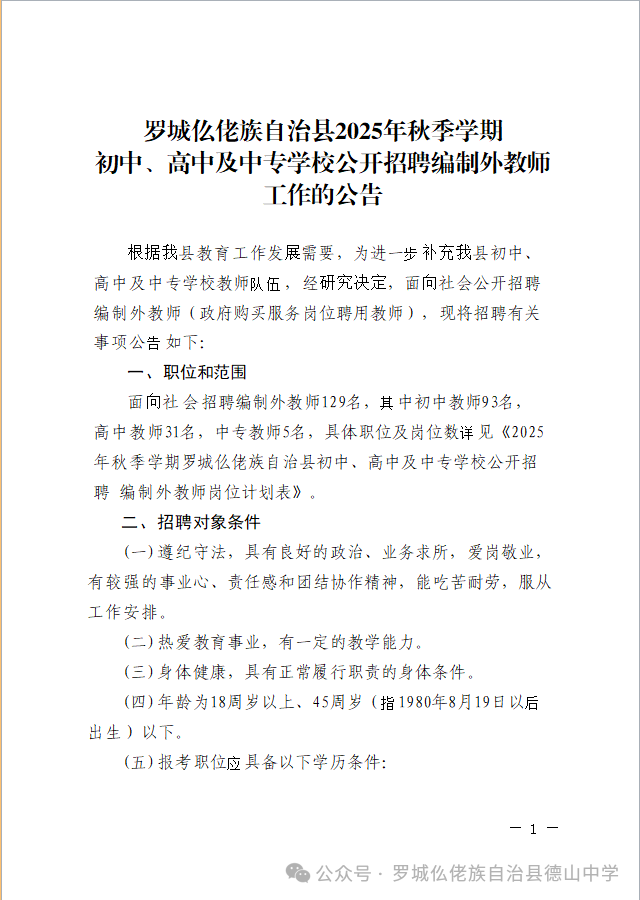 原文標(biāo)題:羅城仫佬族自治縣2025年秋季學(xué)期初中、高中及中專學(xué)校公開招聘編制外教師工作的公告