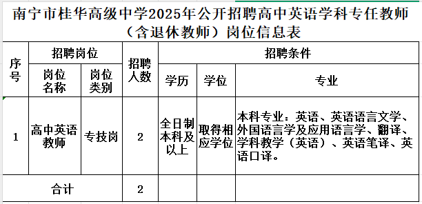 2.現場報名。應聘者持有關材料直接到南寧市桂華高級中學校辦報名。