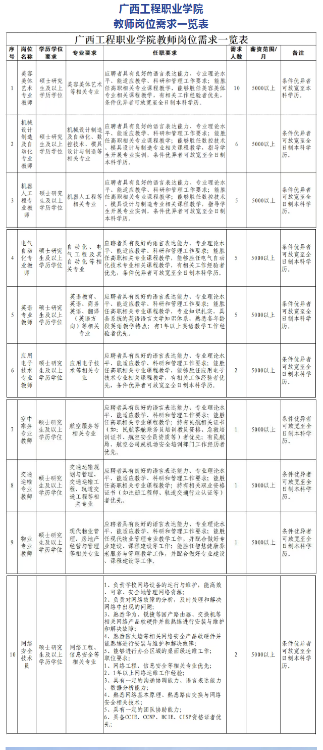 原文標題:急聘!招賢納士 共筑未來 | 廣西工程職業(yè)學院2025年人才招聘