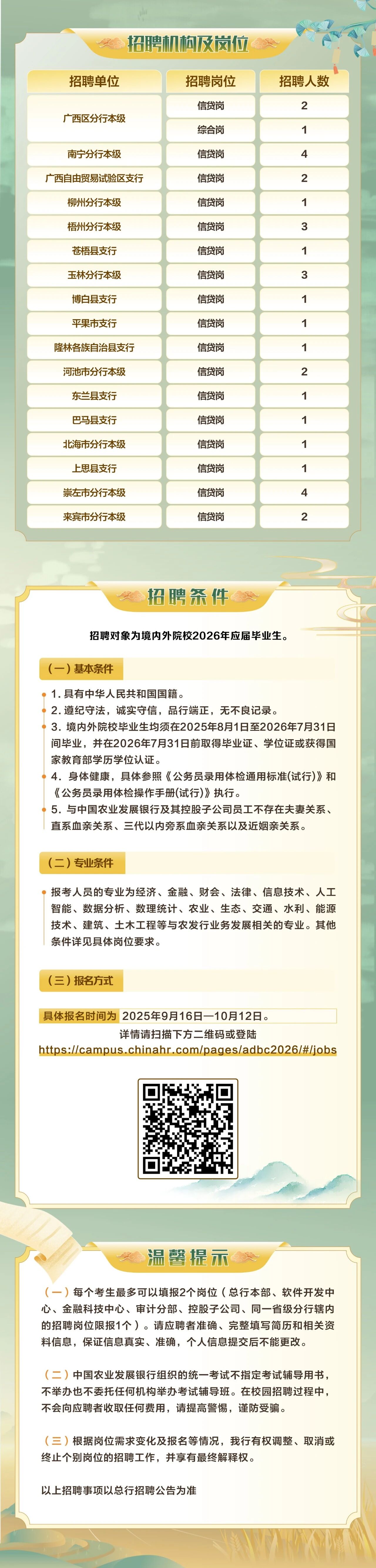 中國農(nóng)業(yè)發(fā)展銀行廣西區(qū)分行2026年校園招聘正式啟動(dòng)