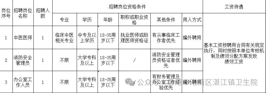 湛江鎮(zhèn)衛(wèi)生院公開招聘公告