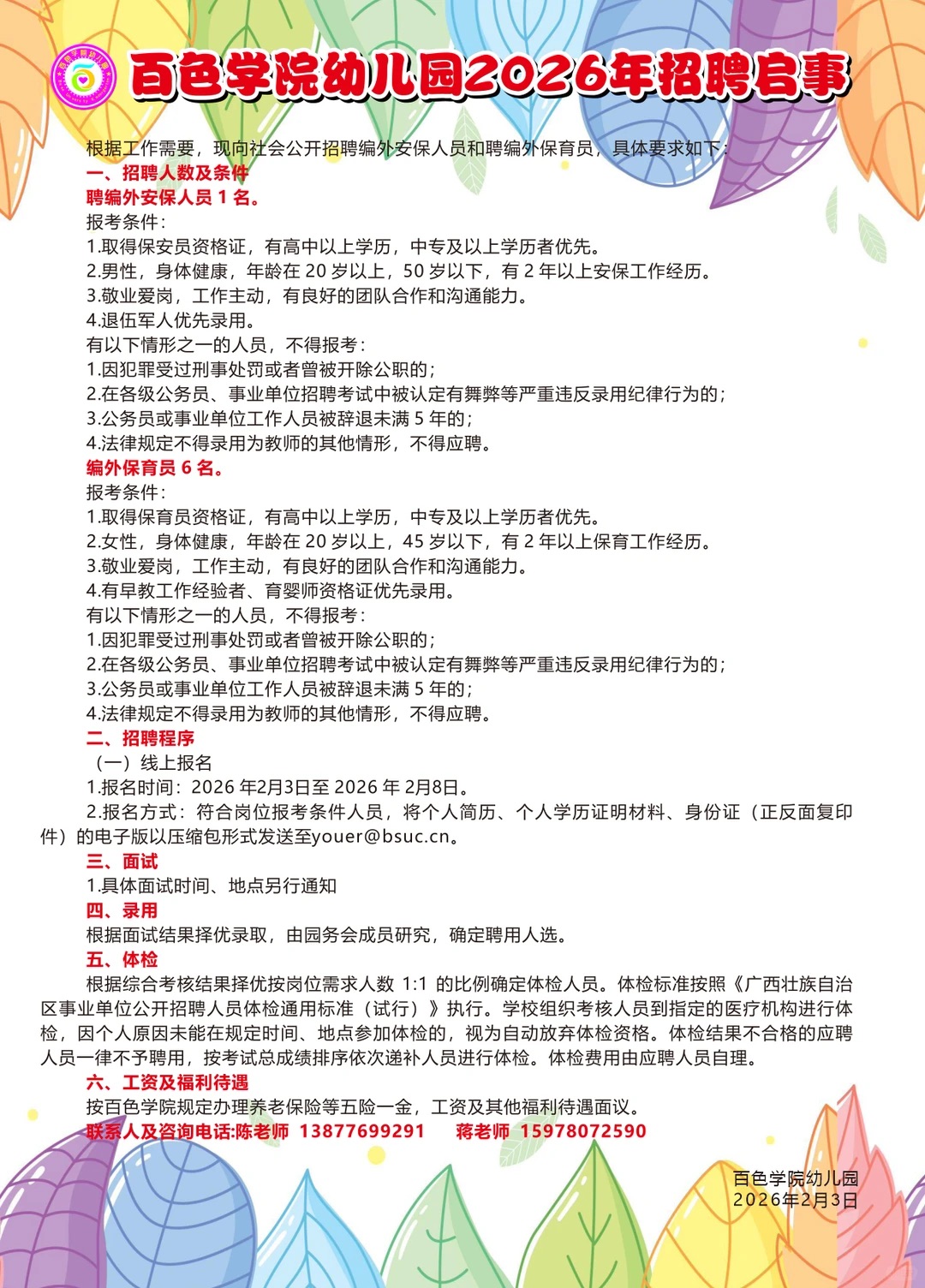 原文標題:百色學院幼兒園2026年招聘啟事