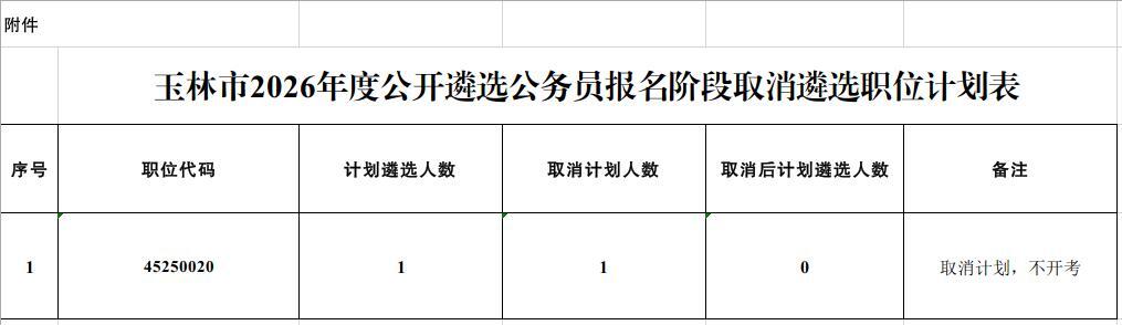 附件:玉林市2026年度公開遴選公務(wù)員報名階段取消遴選職位計劃表