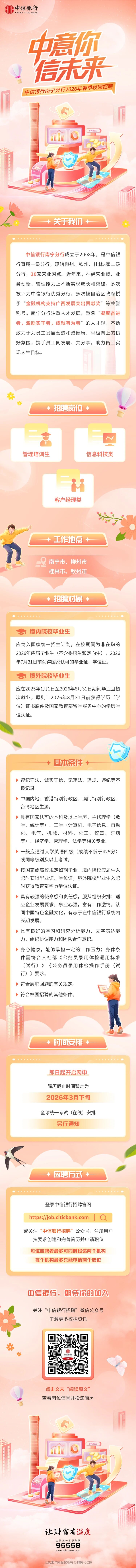 原文標(biāo)題:中信銀行南寧分行2026年春季校園招聘