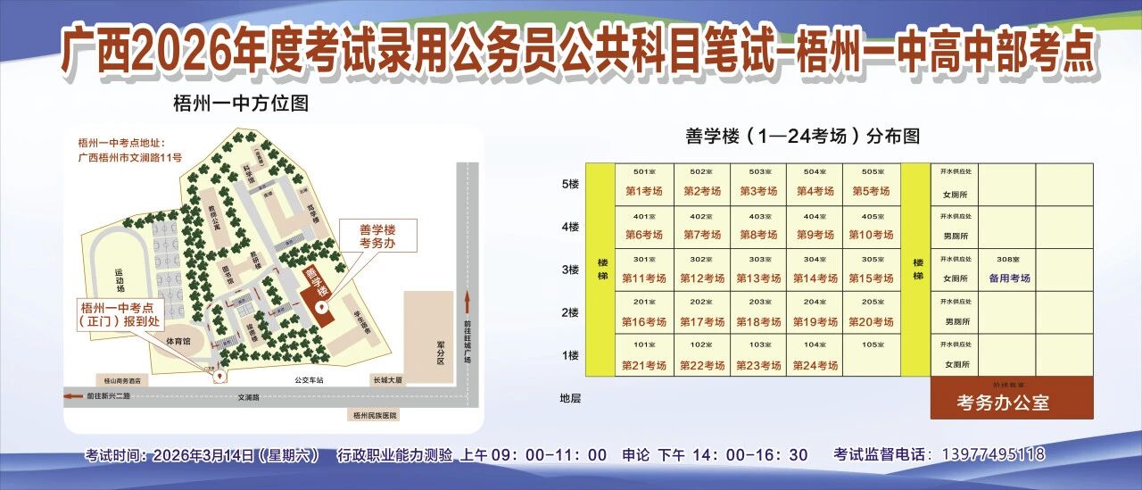 廣西2026年度考試錄用公務(wù)員(選調(diào)生)公共科目筆試梧州考點(diǎn)指引